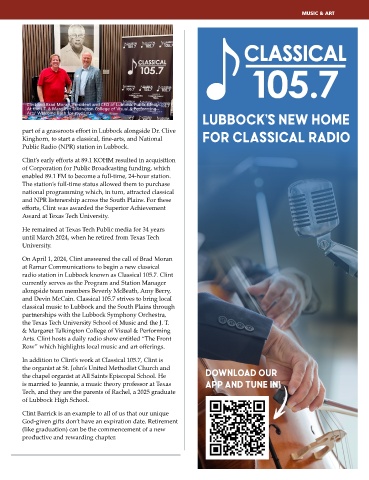 radio station in Lubbock known as Classical 105.7. Clint
