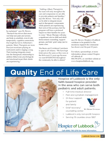 and emotional issues their clients the community be able to attend,” 806-795-2751, or visit their website at