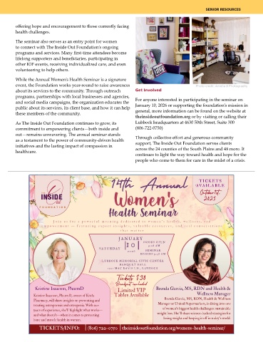 TICKETS/INFO: | | (806) 722-0750 theinsideoutfoundation.org/womens-health-seminar/