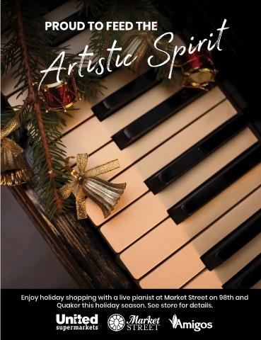 Ar s c Spirit PROUD TO FEED THE Enjoy holiday shopping with a live pianist at Market Street on 98th and Quaker this holiday season. See store for details.